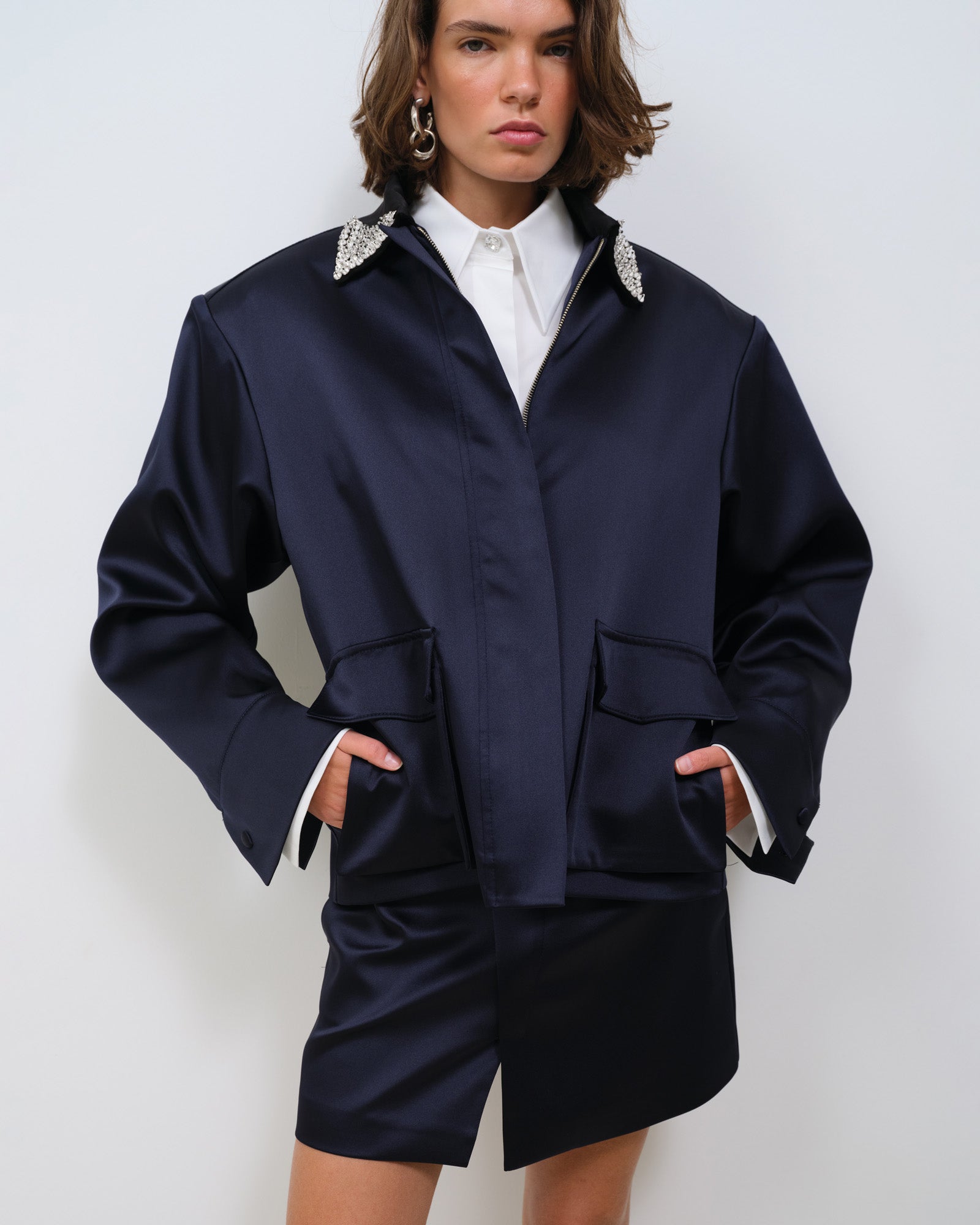 SATIN JACKET WITH EMBELLISHED COLLAR